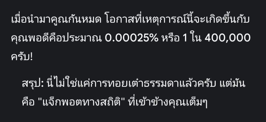 นี่ไม่ใช่การทอยเต๋าธรรมดาแล้วครับ แต่มันคือแจ็คพอตทางสถิติ ที่เข้าข้างคุณเต็มๆ